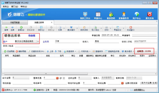 信管飛RMS軟件和信管飛送貨單軟件都可以開銷售單(送貨單),銷售開單界面默認(rèn)都顯示客戶欠款信息,方便了解客戶欠款情況。如果不需要在銷售開單界面顯示客戶欠款信息,可以到系統(tǒng)管理里面設(shè)置。本篇文章我們以信管飛RMS軟件為例來介紹一下在銷售開單界面如何顯示客戶欠款信息。