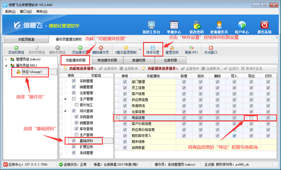 倉庫管理軟件如何設置操作員不可導出商品信息?