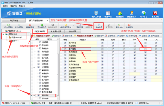 進銷存軟件如何設置操作員不可導出客戶信息?