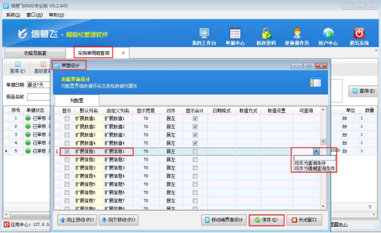 歡迎下載試用支持在單據(jù)明細(xì)查詢中擴(kuò)展信息可作為查詢條件的軟件:信管飛RMS軟件