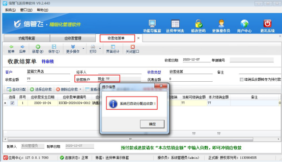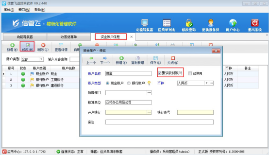 歡迎下載試用可默認(rèn)資金賬戶進(jìn)行收款的軟件:信管飛送貨單軟件