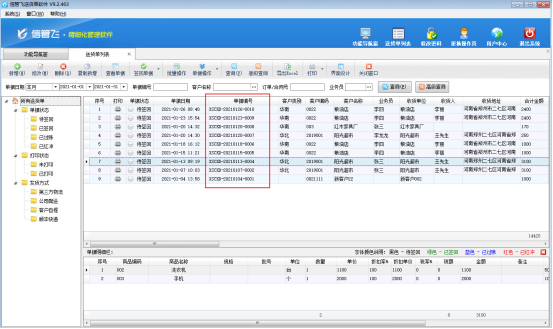信管飛RMS、信管飛送貨單軟件、信管飛倉庫管理軟件開單保存后都會自動生成單據(jù)編號,單據(jù)編號流水號依次遞增,單據(jù)保存后可以在單據(jù)匯總表中查看,方便用戶按單據(jù)編號快速查詢單據(jù)。