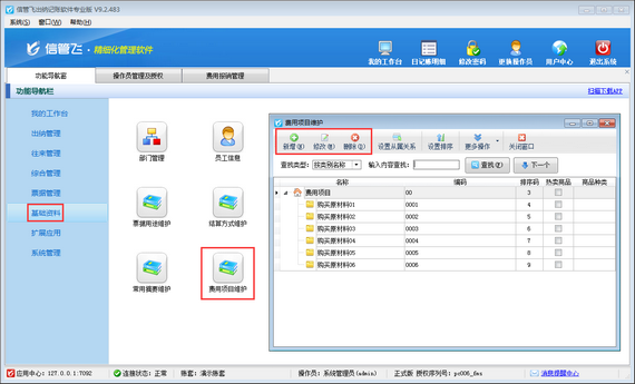 在日常工作中,因為臨時事件的發(fā)生,員工經(jīng)常會自己墊付工作所需要的各項費用。這些費用在月末時可以填寫費用報銷單進行統(tǒng)一的報銷。信管飛出納記賬軟件專業(yè)版有費用報銷管理功能,可以管理費用報銷單,本篇文章介紹一下如何維護常用費用報銷項目?