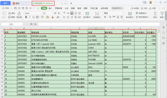 打開導出的Excel模板,按模板的標題行進行整理商品信息,整理完成后保存并關閉Excel打開界面。打開軟件商品信息界面,工具欄“導入導出”按鈕下點擊“導入商品資料”選擇整理好的Excel文件,如下圖所示: