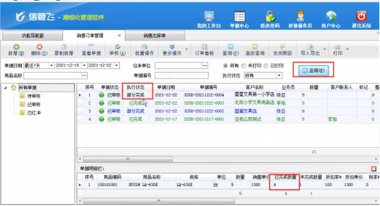 目前軟件對于手動標記為已完成狀態(tài)的訂單,后期如修改引用此訂單的出庫單數(shù)量,只要小于訂單數(shù)量,手動標記完成的訂單執(zhí)行狀態(tài)仍會自動更新,變?yōu)椴糠滞瓿桑缦聢D: