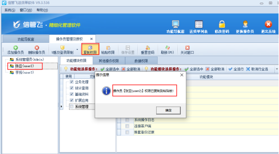 歡迎下載試用可快速?gòu)?fù)制操作員權(quán)限設(shè)置的軟件:信管飛送貨單軟件