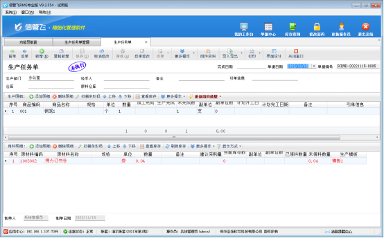 參數保存完成后,返回至生產任務單界面,點擊反審修改,任務單反審修改成功。