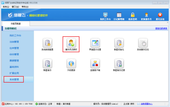 歡迎免費下載試用可設置操作員登錄限制的進銷存管理軟件信管飛出納記賬軟件