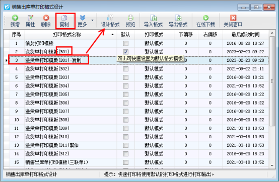 常用的模板可設置默認模式,開單可直接點擊打印按鈕進行打印,其他的可以點擊“選擇格式打印”選擇模板進行預覽打印。