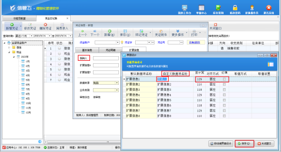 進銷存軟件日記賬憑證界面如何顯示擴展信息?