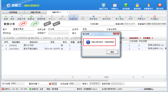 信管飛RMS軟件支持對(duì)銷售訂單進(jìn)行反審修改、紅沖操作,部分用戶在修改已發(fā)貨訂單時(shí)可能會(huì)出現(xiàn)“當(dāng)前訂單已發(fā)貨,不能反審修改”的提示,本篇文章以“信管飛RMS軟件”為例介紹下已發(fā)貨訂單無(wú)法修改如何解決?