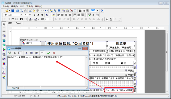 打印模板四舍五入顯示兩位,在開單界面打印下點(diǎn)擊“打印格式設(shè)計(jì)”,選擇打印模板,點(diǎn)擊“設(shè)計(jì)格式”進(jìn)入模板設(shè)計(jì)器,金額設(shè)置四舍五入需要調(diào)用RMRound函數(shù),打開金額文本框,復(fù)制取整調(diào)用數(shù)據(jù)項(xiàng):[RMRound([單據(jù)主體."應(yīng)收應(yīng)付金額"],2)],然后確認(rèn)保存,如下圖:
