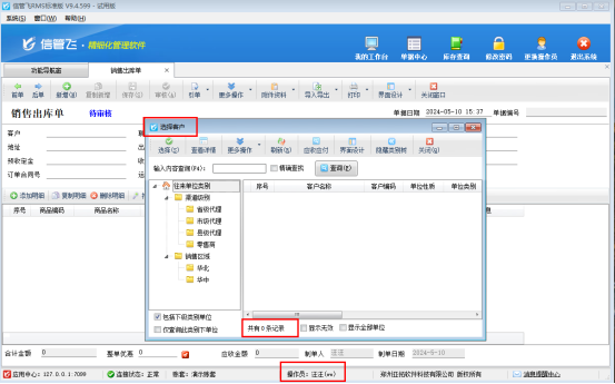 權限保存后,使用操作員再次登錄軟件,銷售出庫單開單界面選擇客戶信息界面可正常顯示客戶信息,如下圖所示: