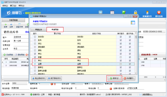 在外部客戶界面設計,單據明細項取消勾選單價和金額,然后點擊保存按鈕,接收訂單消息詳情不能查看單價和金額,如圖所示: