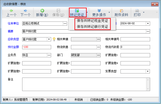 此文章相關(guān)演示視頻:新增客戶預(yù)付款界面如何直接轉(zhuǎn)記出納憑證演示視頻