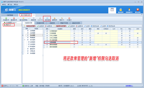 出納記賬軟件如何設(shè)置操作員不可新增還款單?