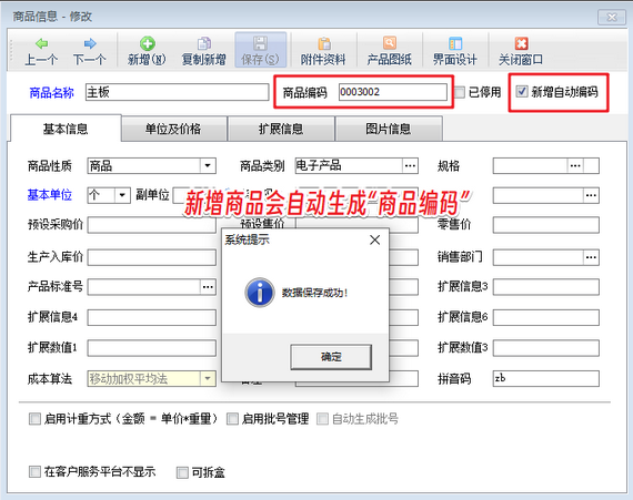 在實際使用信管飛RMS進行商品管理的過程中,有些用戶更新到新版本后發現新增商品時系統會自動生成商品編碼,如下圖所示。而這一功能對于某些用戶來說并不必要,甚至可能會導致商品編碼混亂。