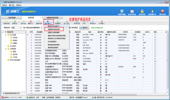 在實際操作中,面對大量需要停用的商品,逐一處理無疑會耗費大量時間。為此,信管飛送貨單軟件提供了便捷的批量處理功能。用戶只需進入“基礎資料”下的“商品信息”界面,點擊“更多操作”—》“批量維護商品信息”即可進入批量維護商品信息界面。