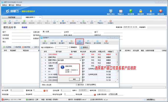 完成參數(shù)配置后,在銷售管理環(huán)節(jié),當(dāng)新開(kāi)銷售出庫(kù)單時(shí),在選擇客戶界面,企業(yè)人員就能清晰看到當(dāng)前客戶的應(yīng)收款情況,有助于及時(shí)把控銷售款項(xiàng)的回收。