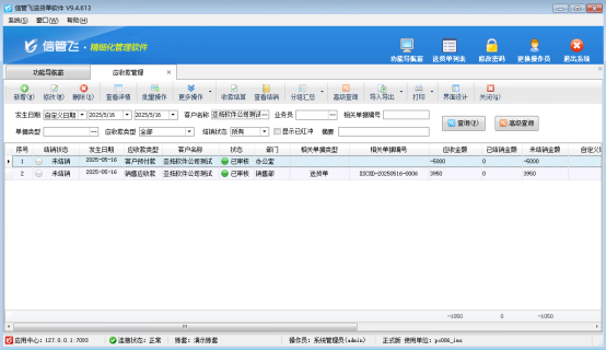 結(jié)算單保存審核后客戶預(yù)付款和銷售應(yīng)收款,更新已結(jié)銷狀態(tài),客戶預(yù)付抵消銷售應(yīng)收款,多余預(yù)收已退回如圖所示: