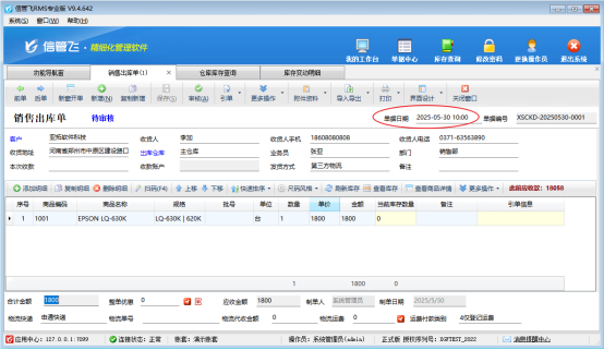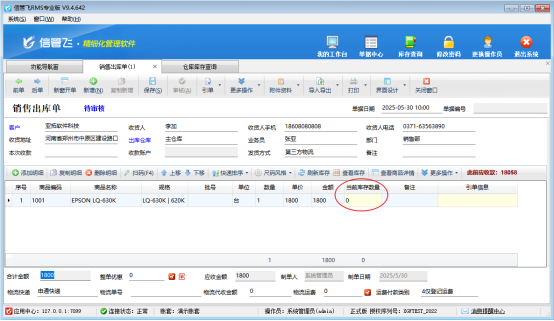 解決方法:將銷售出庫單時間修改為入庫時間之后,比如5月30日14點30分,再點擊刷新庫存,即可更新商品“EPSON LQ-630K”銷售出庫單中當前庫存數量。