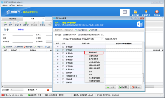 解決方法:在導入Excel數(shù)據(jù)界面,鼠標點擊空白地方右鍵,選擇刷新數(shù)據(jù)項,被隱藏的擴展信息及其他字段都會顯示出來,如:商品擴展信息1、擴展信息11、擴展信息12等擴展信息10之后擴展字段,如圖