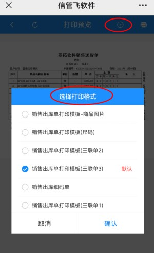 • 支持查看打印預覽界面的信管飛微信端