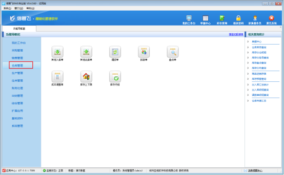 信管飛RMS軟件、信管飛倉庫管理軟件最新版增加庫存月結功能,可按月或跨月進行庫存結存,結存后可直接調整庫存數量及庫存成本。本文以信管飛RMS專業版為例示范下如果操作。 演示視頻觀看鏈接:信管飛RMS軟件庫存月結如何使用? 在功能導航窗點擊“倉庫管理”—“