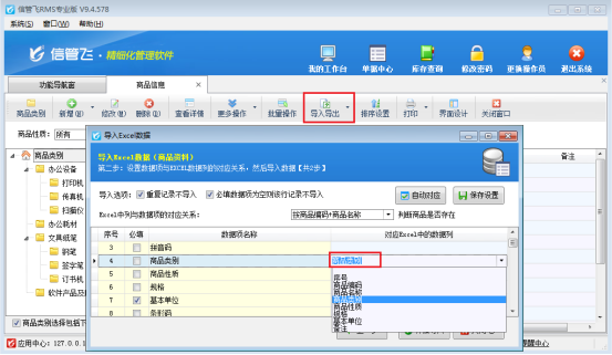 信管飛軟件支持通過Excel導入數據,通過Excel數據導入可以將數據方便快捷的導入到軟件中,省去了使用初期大量的數據的錄入所要消耗的時間及人力物力,并避免人為錄入的誤差,使數據錄入的簡單、準確、高效。下面我們以信管飛RMS軟件為例,示范下導入商品信息后,商品類別沒導入成功,如何解決?     方式一:刪除已
