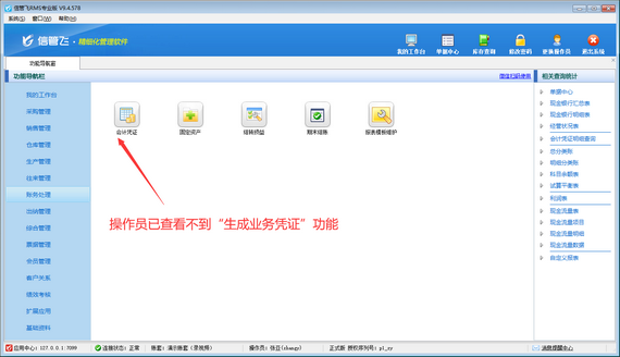 演示視頻觀看鏈接:信管飛RMS如何設置操作員不可生成業務憑證演示視頻    信管飛RMS專業版包含財務處理功能,可登記會計憑證,支持直接對已開單據進行快速生成會計憑證操作,如下圖所示。為避免操作員誤生成會計憑證,軟件支持設置操作員權限,本篇文章介紹下如何設置操作員不可使用生成業務憑證功能?  &nb
