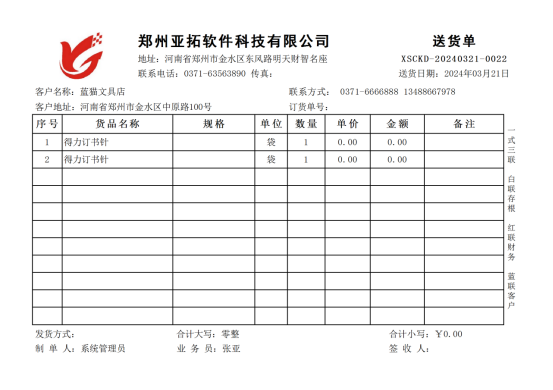 信管飛軟件支持自定義打印模板設計,用戶可以根據自身業務需求調整打印模板樣式和設計格式,本文介紹下打印模板如何設置金額四舍五入保留兩位小數。     本文以“信管飛送貨單軟件”為例,示范下打印模板如何設置金額四舍五入保留兩位小數,打開一個送貨單,金額存在小數,打印預覽圖如下:
