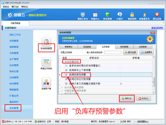 • 信管飛RMS軟件:負庫存預警功能,為經營上把“安全鎖”