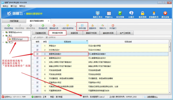 在企業銷售管理中,業務員通常負責特定客戶資源,開單時僅需處理自己的客戶,同時需確保核心客戶信息與業務單據的保密性,防止信息泄露或工作干擾。信管飛RMS軟件通過精準的權限設置功能,有效解決了這一問題,確保操作員只能查看自己開具的單據,為企業數據安全提供堅實保障。     設置步驟簡單明了: