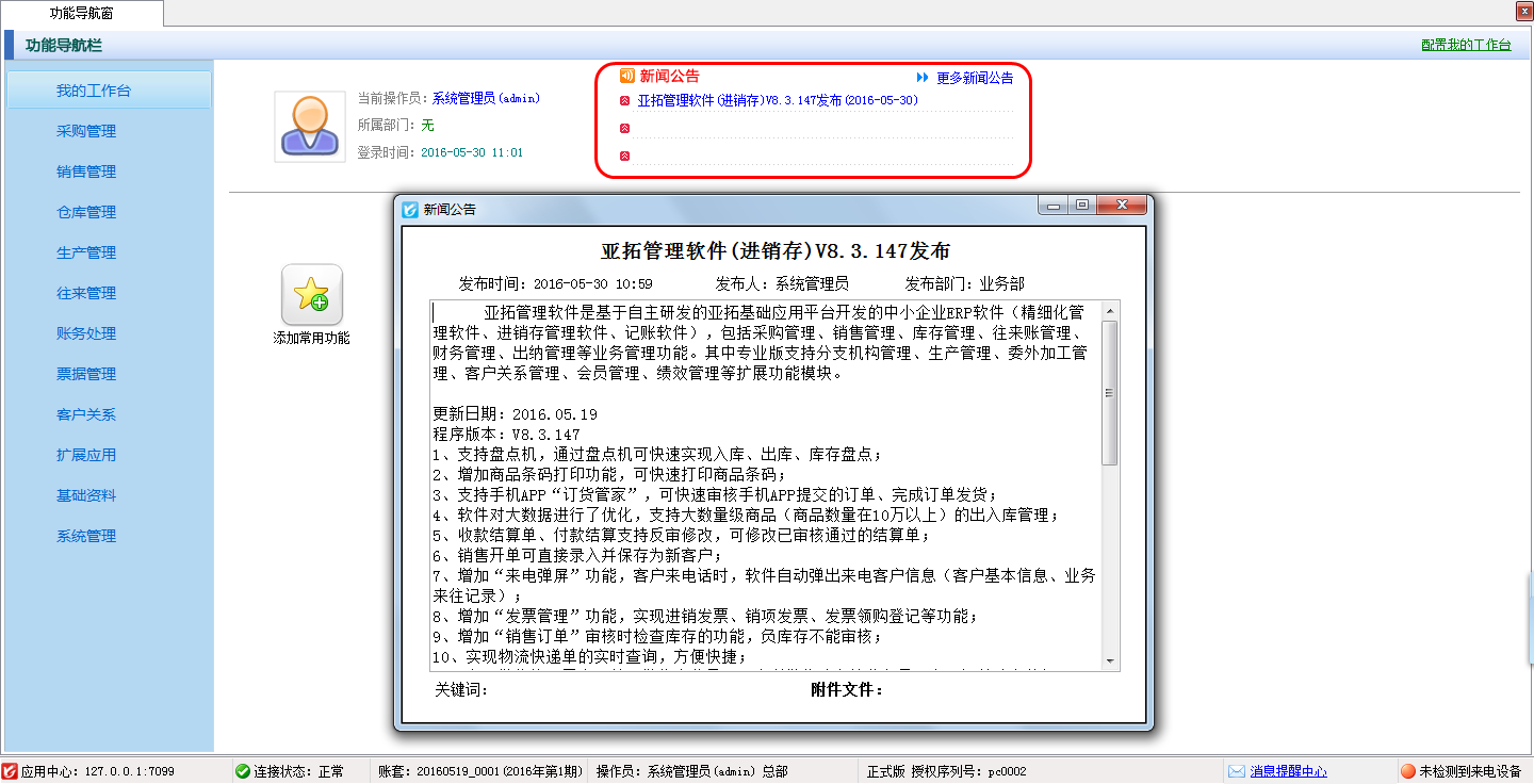 • 支持新聞公告管理功能的進銷存軟件