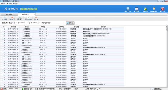 亞拓管理軟件、紅管家送貨單軟件、紅管家出納記賬軟件、紅管家倉庫管理軟件和紅管家票據打印軟件都可以實現多個操作員登錄使用軟件的功能,操作員登錄軟件后,系統會生成操作日志,在系統操作日志管理中可以查看每個操作員的登錄退出記錄以及重要操作的記錄。系統管理員可刪除操作日志,支持批量操作。本文以亞拓管理軟件專業版為例詳細介紹一下軟件中查看系統操作日志的使用方法。&nbs