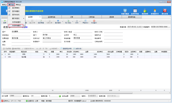 紅管家送貨單軟件、紅管家倉庫管理軟件、紅管家出納記賬軟件、紅管家票據(jù)打印軟件和亞拓管理軟件都可以同時打開多個業(yè)務(wù)單據(jù)窗口,方便用戶對不同的業(yè)務(wù)單據(jù)進行切換窗口查看信息等操作。打開多個窗口界面后,需要關(guān)閉這些已打開的窗口時,可以逐個關(guān)閉各個窗口,也可以一次性關(guān)閉所有窗口,如何快速關(guān)閉所有已打開窗口呢? 我們以送貨單軟件為例,示