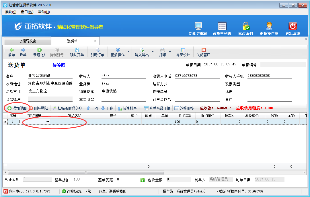 紅管家送貨單打印軟件是一款針對中小型企業(yè)開發(fā)的集送貨管理(發(fā)貨管理)、退貨管理(銷售退貨)、銷售收款(應收款管理)等功能為一體的送貨管理及打印軟件(送貨單打印軟件、發(fā)貨單打印軟件、出貨單打印軟件、收據打印軟件、貨單票據打印軟件)。 紅管家送貨單軟件、紅管家倉庫管理軟件、亞拓管理軟件開單時都可以錄入多個收貨地址,以滿足部分客戶有
