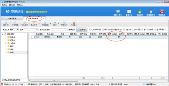 亞拓管理軟件專業版和紅管家倉庫管理軟件都支持雙單位管理,業務單據中可輸入副單位的出入庫數量(可以與基本單位不是比例折算關系),倉庫庫存中可查看副單位的數量。副單位用于處理布匹、鋼材等行業,倉庫庫存需要管理兩種單位的數量(比如布匹行業既要知道有多少米,又要知道有多少卷),兩種單位之間并不存在絕對的比例關系(如果是絕對的比例關系,可以使用輔助單位)。下面我們以亞拓