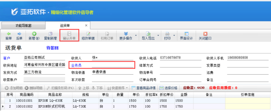 • 銷售開單可以顯示客戶欠款信息的送貨單打印軟件