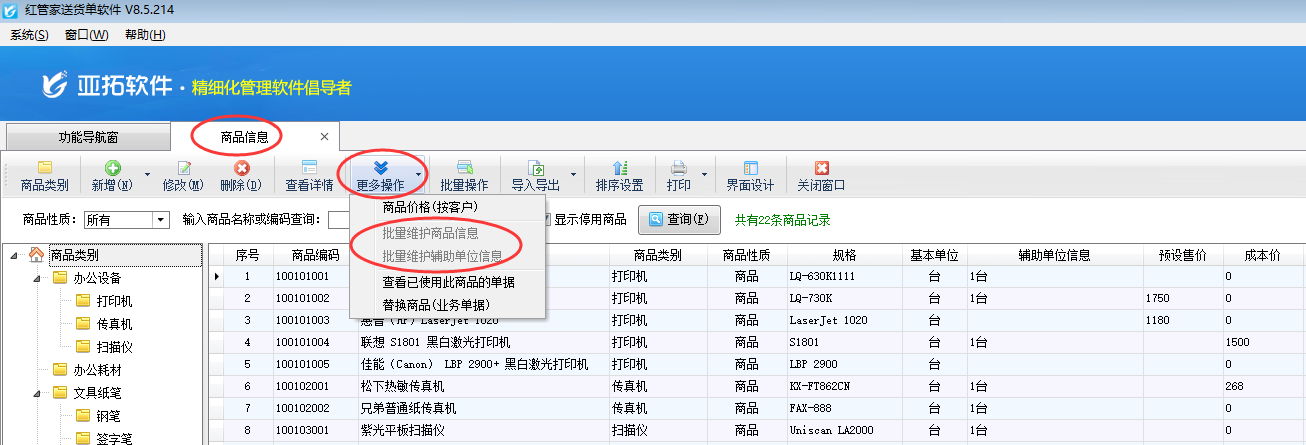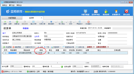亞拓管理軟件、紅管家送貨單軟件、倉庫管理軟件都支持在“基礎資料”—》“商品信息”中維護商品的規(guī)格信息,軟件默認允許開單可以直接在單據(jù)明細中修改商品規(guī)格,為了避免開單修改商品規(guī)格,軟件可以設置開單時單據(jù)明細中的商品規(guī)格不允許修改,我們以送貨單軟件為例示范下如何設置? 首先我們在“基礎資料”—》“商品信息