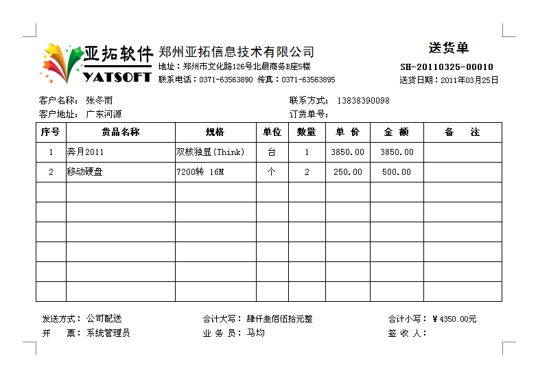 • 送貨單樣式/發貨單樣式/銷售單樣式/送貨單打印格式