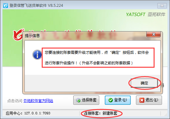 亞拓軟件旗下的信管飛送貨單軟件(原紅管家送貨單軟件)、出納記賬軟件、倉庫管理軟件、亞拓管理軟件等都是公司自主研發的產品,軟件版本在不斷的升級中。用戶升級版本是永久免費的。     本文章以信管飛送貨單軟件為例,示范升級版本后賬套如何升級操作。軟件升級的版本可以直接在官網上下載最新版本,然后覆蓋安裝在原路徑中。