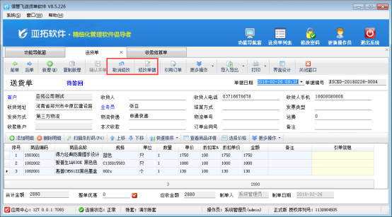亞拓軟件自主開發的信管飛送貨單軟件、亞拓管理軟件等都支持將送貨單(銷售單)進行收款結銷操作,有時可能存在送貨單商品明細開錯的情況。如果當前送貨單的應收款已結銷,軟件是不允許再修改此單據的,如下圖1所示:圖1     本篇文章以信管飛送貨單為例,示范下如何修改應收款已結銷的送貨單單據,打開應收款已結銷的送貨單單