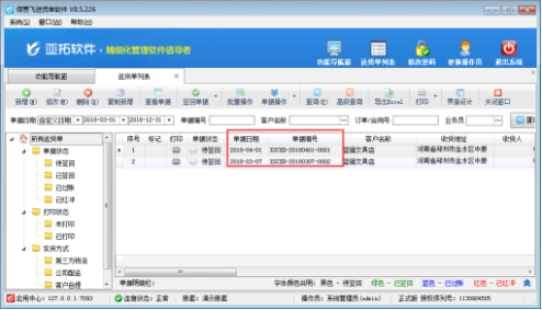 信管飛送貨單軟件、信管飛倉庫管理軟件及亞拓管理軟件等都支持開單打印單據,軟件內置了十幾種打印格式模版,同時支持自定義打印格式模版,本篇文章我們以亞拓管理軟件為例詳細介紹一下如何在打印模版中添加頁碼? 以軟件內置模版B03為例,當單據中商品明細過多時,會自動分為多頁顯示(圖一),此種情況時,部分用戶需要添加頁碼(如“第1頁/共