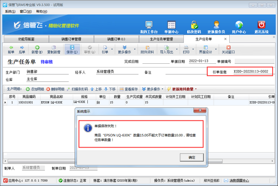 生產任務單,即生產過程中的任務加工單,用于執行生產計劃,進入實際生產階段。生產任務單支持引用銷售訂單及生產計劃單進行開單下達生產任務數量,本篇文章介紹一下生產任務單引用銷售訂單開單的情況下,如何設置生產任務單數量不可大于銷售訂單數量? 在功能導航窗點擊“系統管理”—》“系統參數配置”—》“業務參數”打開業務參數配置界面,在生