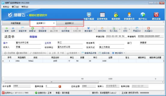 信管飛送貨單軟件、信管飛RMS 軟件等都支持開銷售單以及自動匯總已開的銷售單,軟件默認是開單只能打開一張新開單據界面,保存后打開之前記錄默認只能打開一張。有客戶存在需要同時打開兩張銷售單的情況,軟件如何同時打開兩張單據可參考以下示范。 需要同時打開多張送貨單,需要設置下參數,在功能導航窗點擊“系統管理